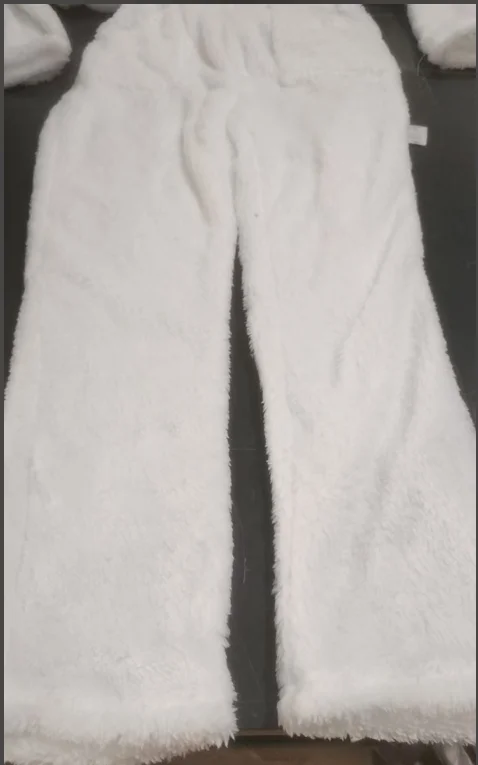 The set is totally disproportionate sizes, I take size M and I have a big fit, the shirt is so short that it does not cover my breasts, as well as super wide, the pants are short and poorly finished. The fabric is nice and warm. The color is immaculate white.